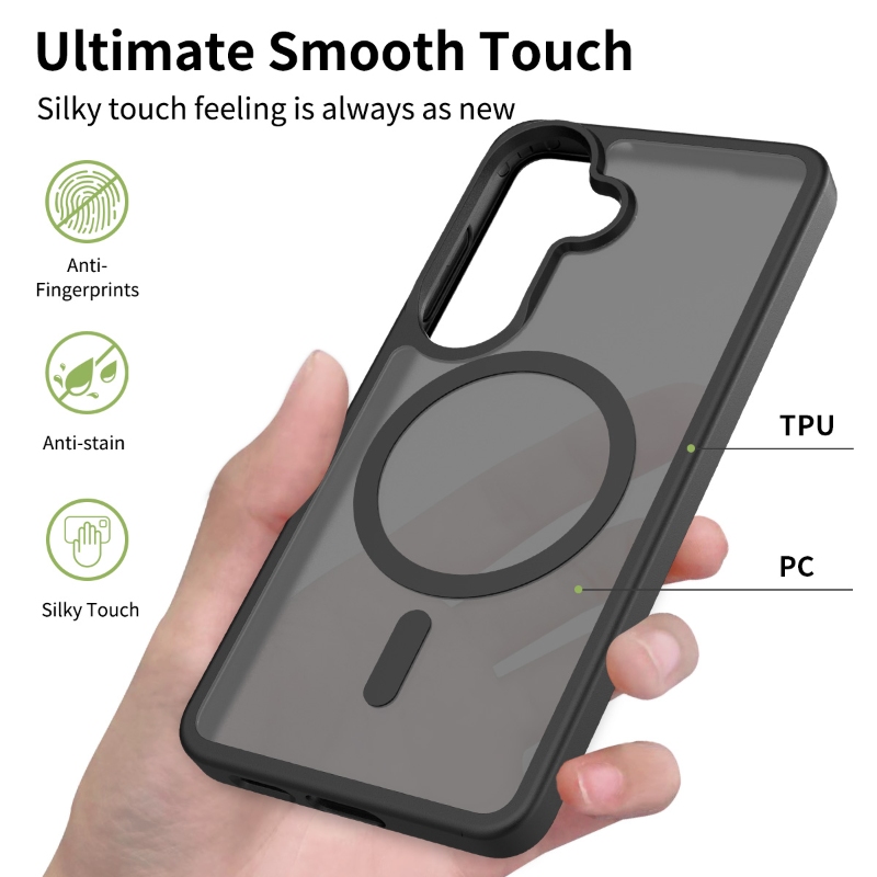 Standard clear cases turn yellow, and cheap silicone cases often feel greasy and collect lint. For retailers and wholesalers, this leads to customer complaints. Today, we are proud to introduce our latest solution: The Silk-Frosted Magnetic Shockproof Case.