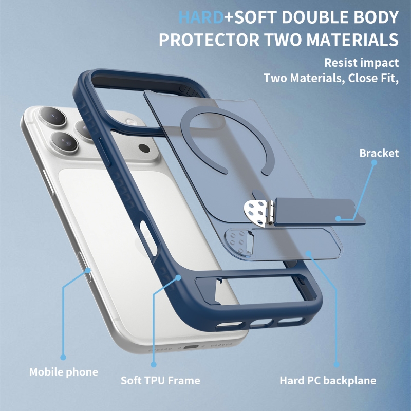 Materials: Hard PC (2.0mm) + Soft TPU (1.9mm) + Zinc Alloy Metal Stand