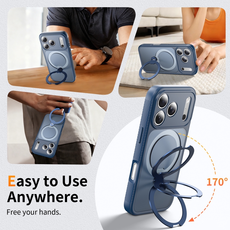 Any Angle, Anytime: The built-in ring stand features a 360° rotating base and a 170° folding hinge, allowing you to find the perfect viewing angle in seconds.