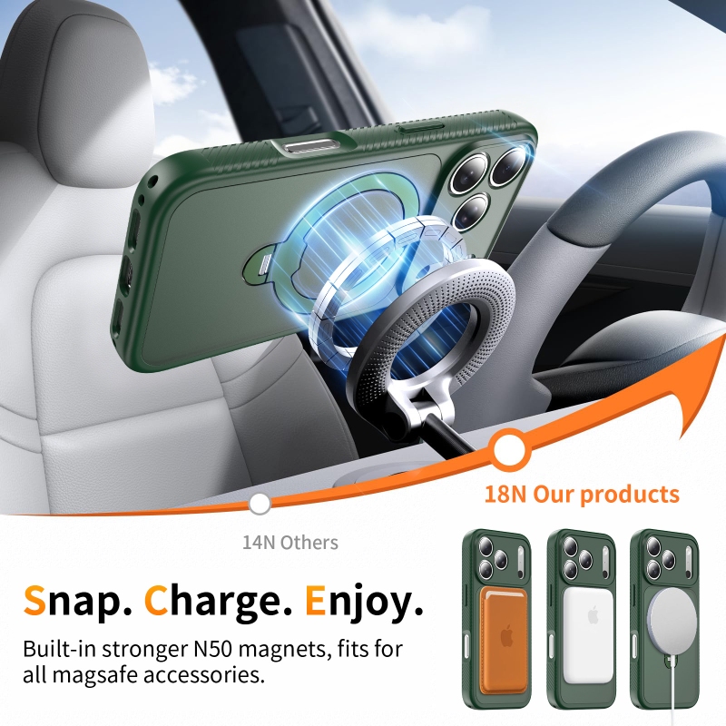 Next-Gen Magnets: Featuring built-in N50 magnets with a powerful 18N magnetic force—30% stronger than standard magnetic cases.
