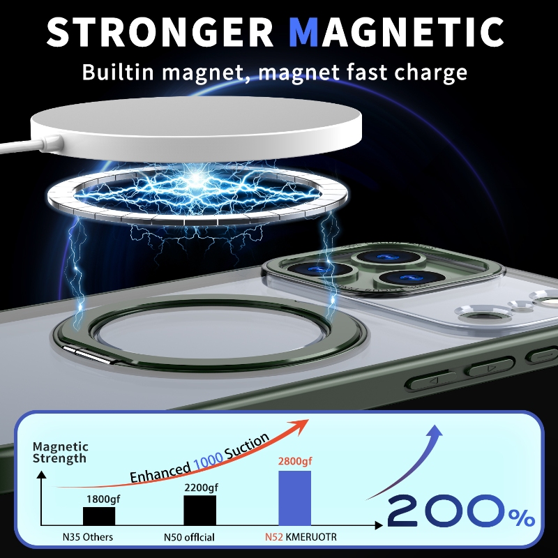 Powerful Suction: Built-in N52 magnets ensure a secure lock on car mounts and chargers.