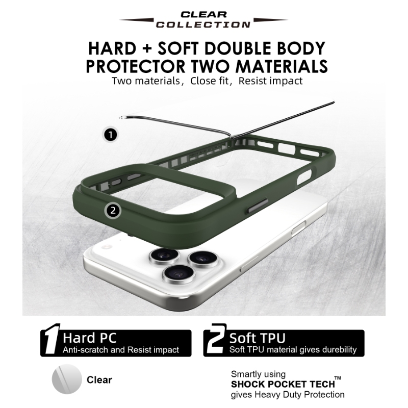 Hybrid Structure: Combines a scratch-resistant Hard PC back with a shock-absorbing Soft TPU frame.
